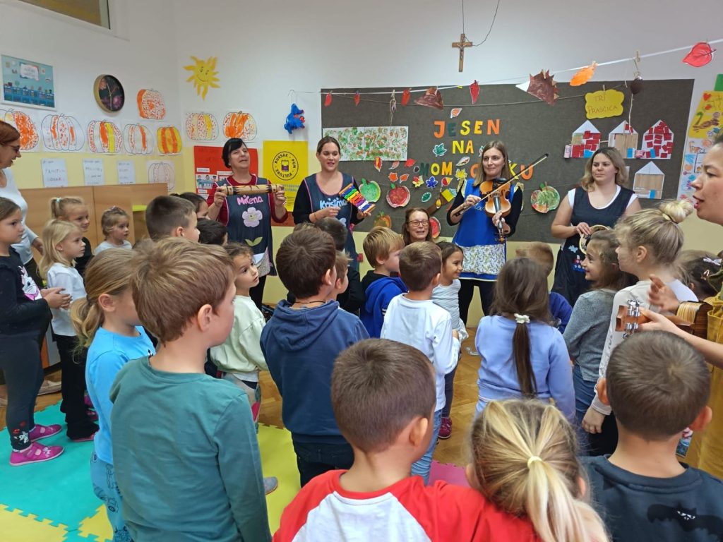 Koristeći se jednostavnim i zabavnim zagonetkama, pjesmicama i brojalicama uz pomoć mašte uvela je djecu u svijet glazbe i umjetnosti koji su oni sami kreirali i nadograđivali. Naša djeca iz skupina Cvjetići i Ribice su bili potaknuti na aktivno slušanje i istraživanje mogućnosti prostora oko sebe.